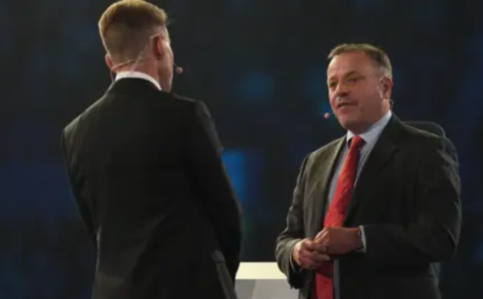 Arron Banks at the Reform Conference in Birmingham, courtesy of Reform broadcast