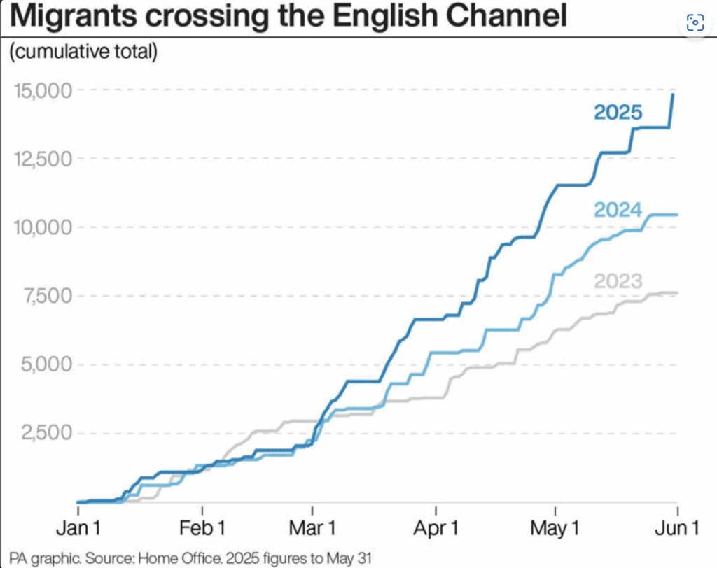 While the majority of net migration is accounted for by legal migration, the Government is facing rising pressure on the issue of small boats illegally crossing the Channel when on Saturday, 1,194 people arrived in 18 small boats – the highest number of migrants recorded on a single day so far in 2025 and Defence Secretary John Healey claiming “There’s no overnight solution for this, the truth is that Britain lost control of its borders over the last five or six years …….We’ve now got an agreement and cooperation with the French to change their rules to allow the police to be able to disrupt these gangs and these smugglers when they’re in the water not just on the shore” which according to Reform is rubbish.